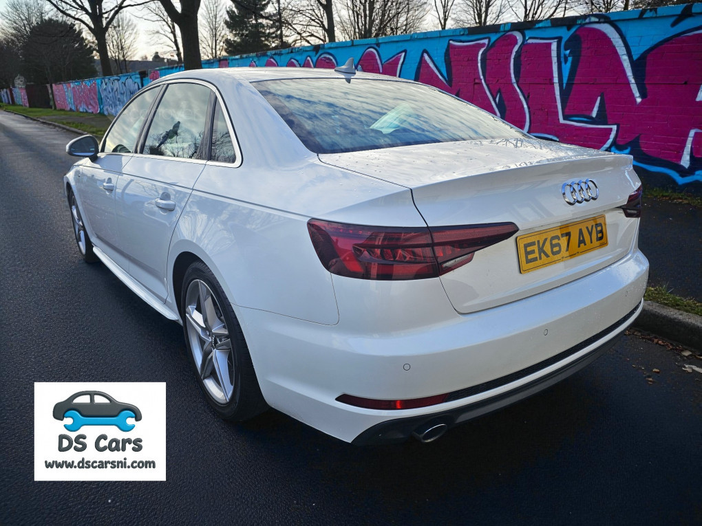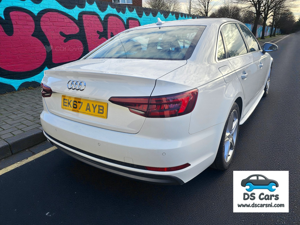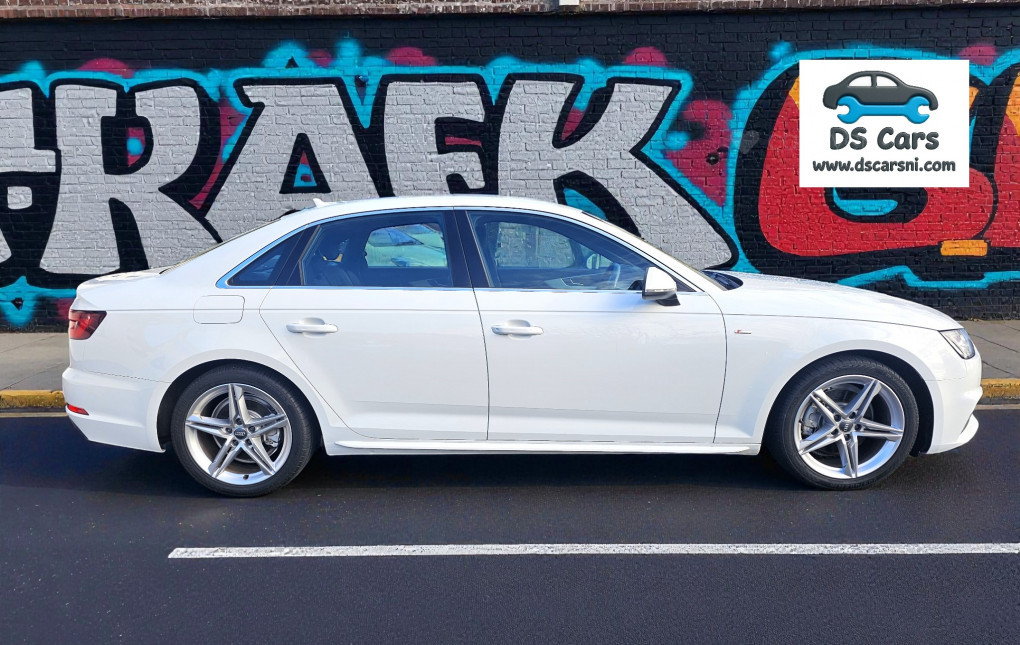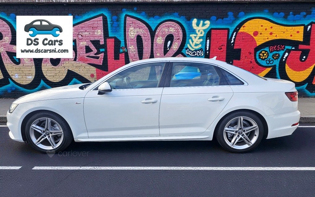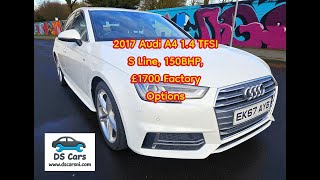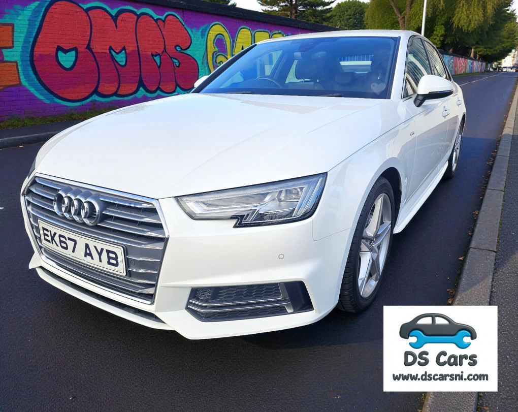 2017 Audi A4 1.4 TFSI S Line (150bhp petrol), 6 speed manual, 4 door saloon finished in gloss Ibis white with matching half leather S Line interior. MOT'd to 26/08/2026.