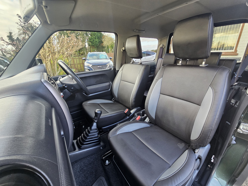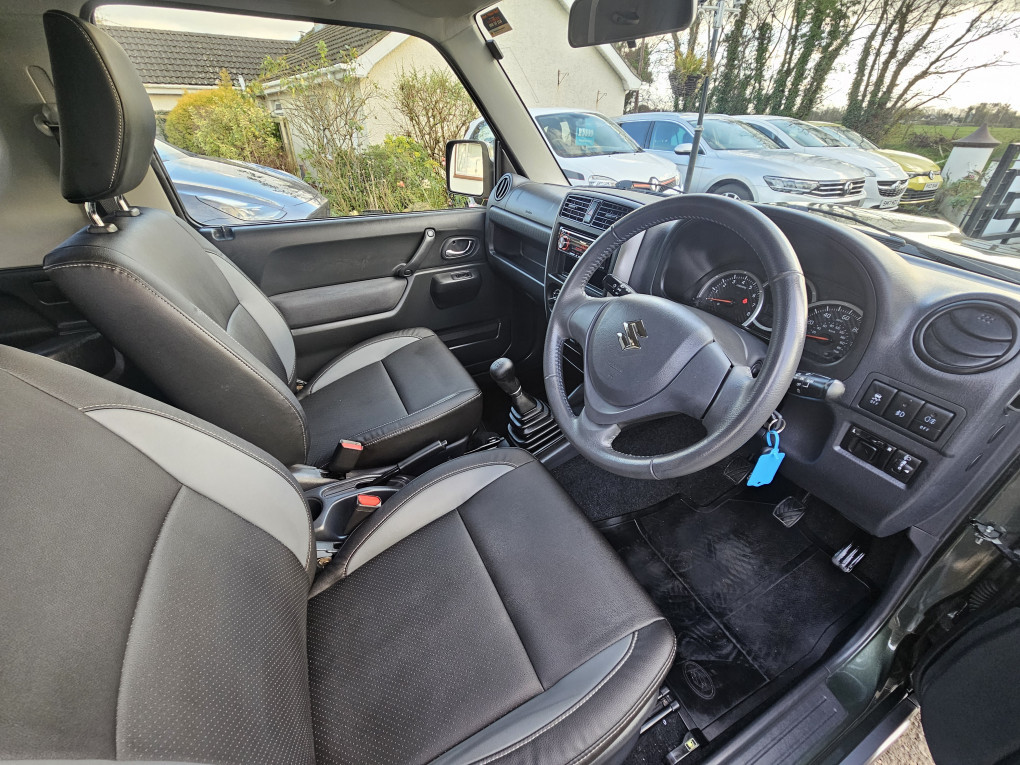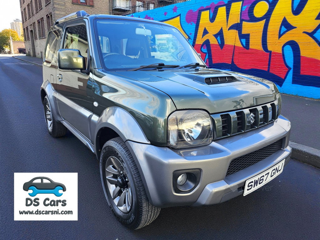 Dec 2017 Suzuki Jimny 1.3 VVT SZ4 (85bhp petrol) 5 speed manual, 3 door SUV, finished in Khaki Green Metallic and Quasar Grey lower with matching grey interior. MOT'd to 14/11/2026.